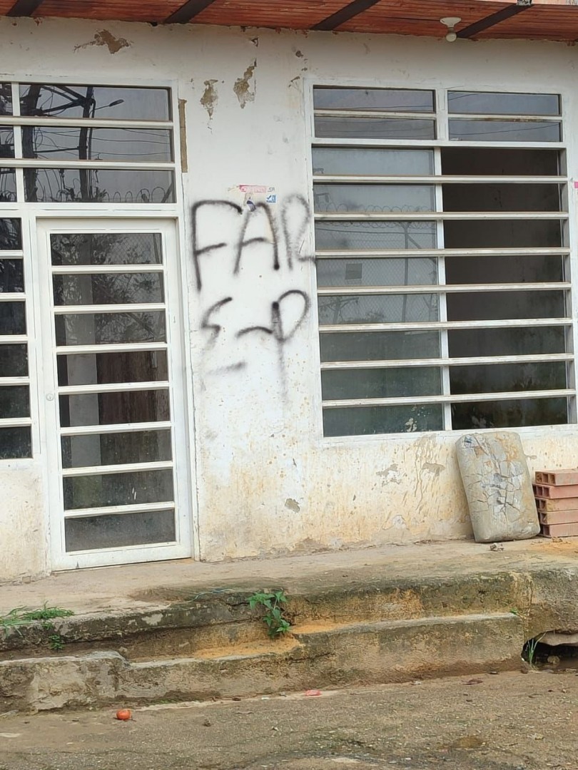 Letrero que fue desinstalado por el Ejército Nacional en el transcurso de este martes 2 de abril. Sin embargo, hubo otros que también aparecieron en las fachadas de las casas en el municipio de Anzoátegui. Viviendas, vehículos y hasta centros educativos aparecieron con letreros pintados referentes a las Farc EP.