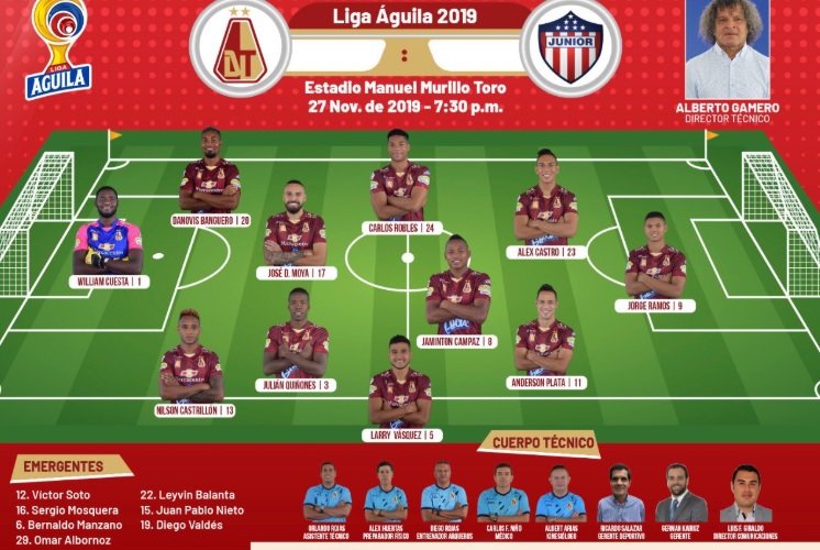 Tolima inició ganando muy temprano en el minuto ocho pero la alegría duró poco ya que Junior de Barranquilla antes del minuto 15 empataba el encuentro, Sin embargo, los dirigidos por Gamero continuaban brindando un buen espectáculo logrando antes de finalizar el primer tiempo ir al camerino ganando.