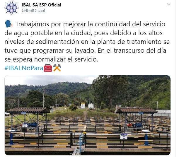 "Los protocolos de calidad obligan a lavar las líneas, con el fin de garantizar la calidad del agua. Por eso se han presentado intermitencias o bajas presiones en las horas de la mañana. Invitamos a que reporten las novedades a la línea 116 de call Center o a la línea fija 2617824, para darles pronta solución", indicó Juan Carlos Núñez, gerente del IBAL.