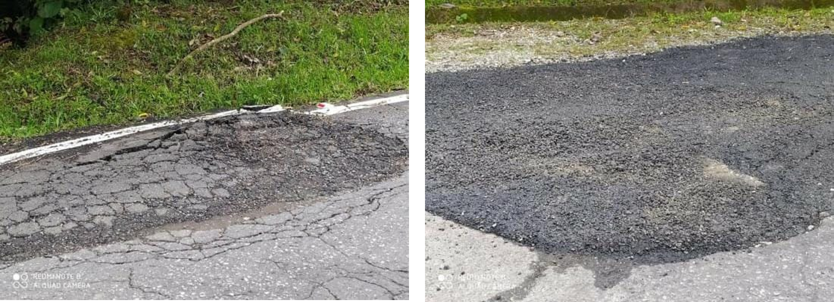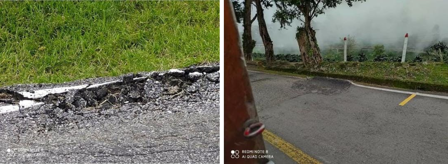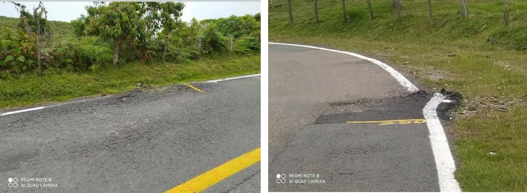 El arquitecto Jorge Martínez Ávila en su cuenta de Facebook muestra con fotos distintos tramos de la vía que presentan mal estado. “Este es el estado de una vía que en los últimos cuatro años se la han pasado maquillando, pintando las líneas, ubicar señalización deficiente, poda y un reparcheo con pisón manual”, escribe.
