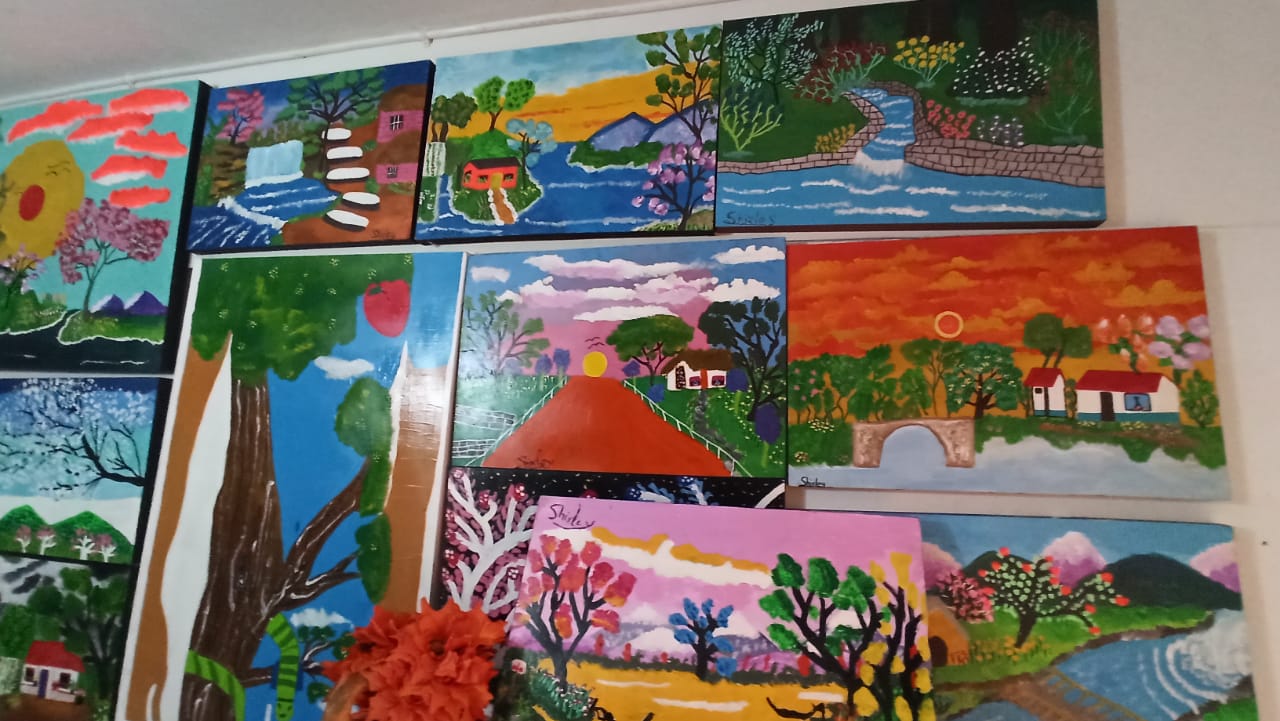 En algunas ocasiones Shirly vende sus obras. Hay cuadros de $40.000, y algunos que llegan hasta los $150.000. Cada copia de El mundo a través de mi ventana cuesta $10.000. Con eso se ‘bandean’, como se dice coloquialmente.