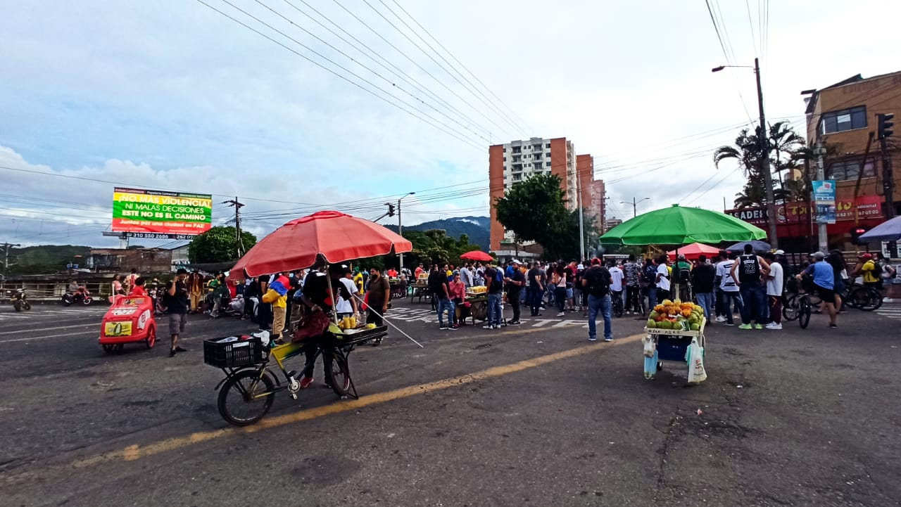 Lo que al principio consistía en bloqueos viales intermitentes, ahora es permanente. En estos momentos el paso de vehículos está bloqueado en la calle 60, entre carreras Quinta y Séptima. Es decir, desde el centro comercial Multicentro, hasta el centro comercial Aqua.