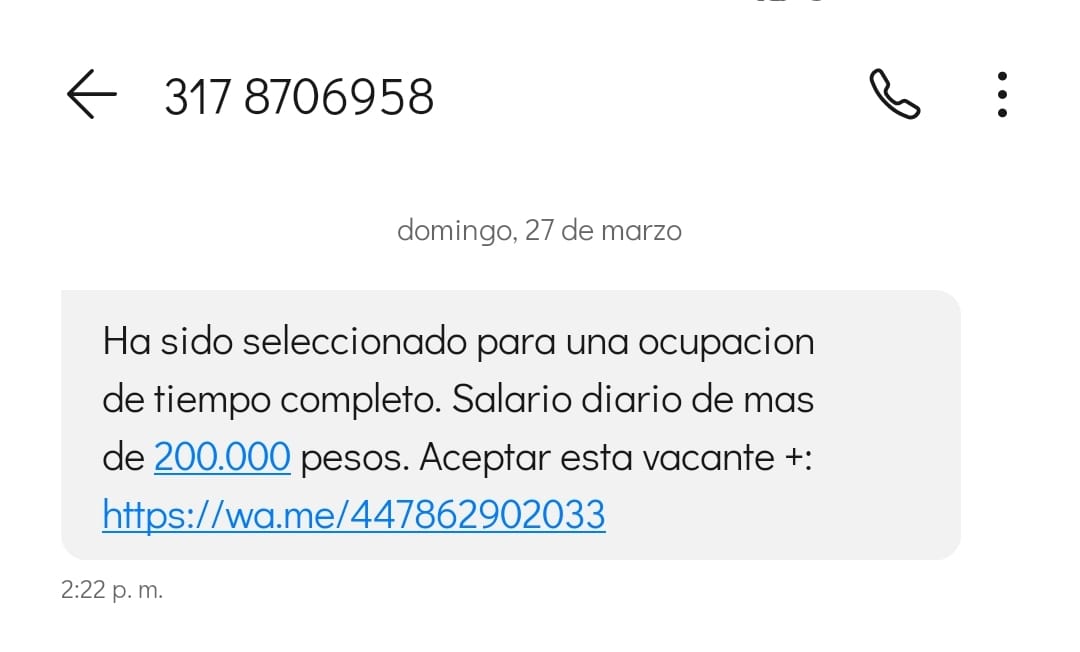 Ofertas laborales por medio de mensaje de texto, una nueva modalidad de estafa