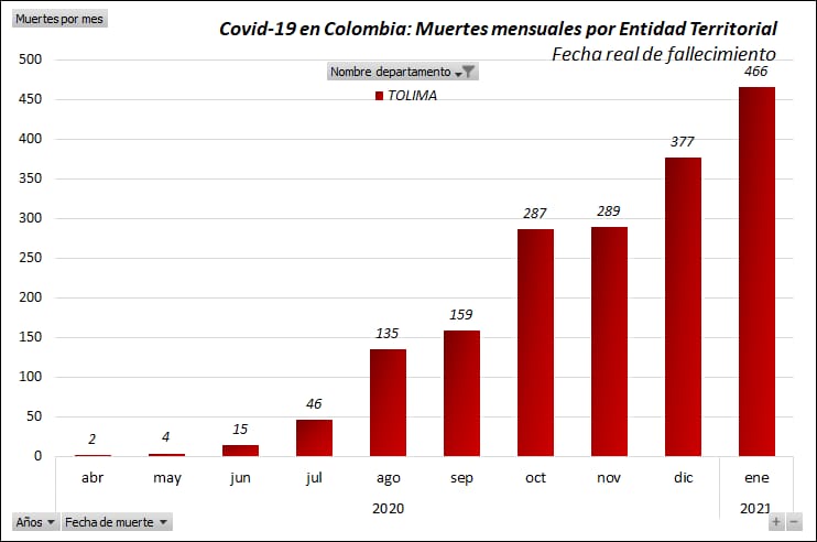 A la fecha, el Tolima acumula 1.801 fallecidos por cuenta de la enfermedad.