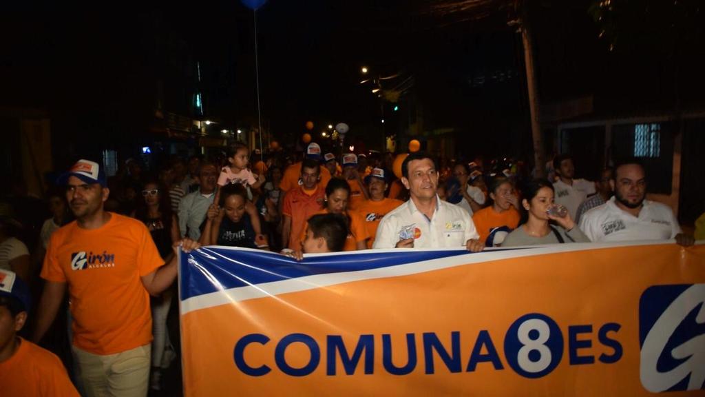 El evento central, estuvo presidido de una nutrida caminata, desde las puertas de sus casas, las ventanas y azoteas, se sumaron al grito de #YoSoyGirón, confirmando así el compromiso que la ciudadanía y, en especial la comuna 8, tiene con la aspiración del candidato, dice un comunicado de prensa de la campaña.